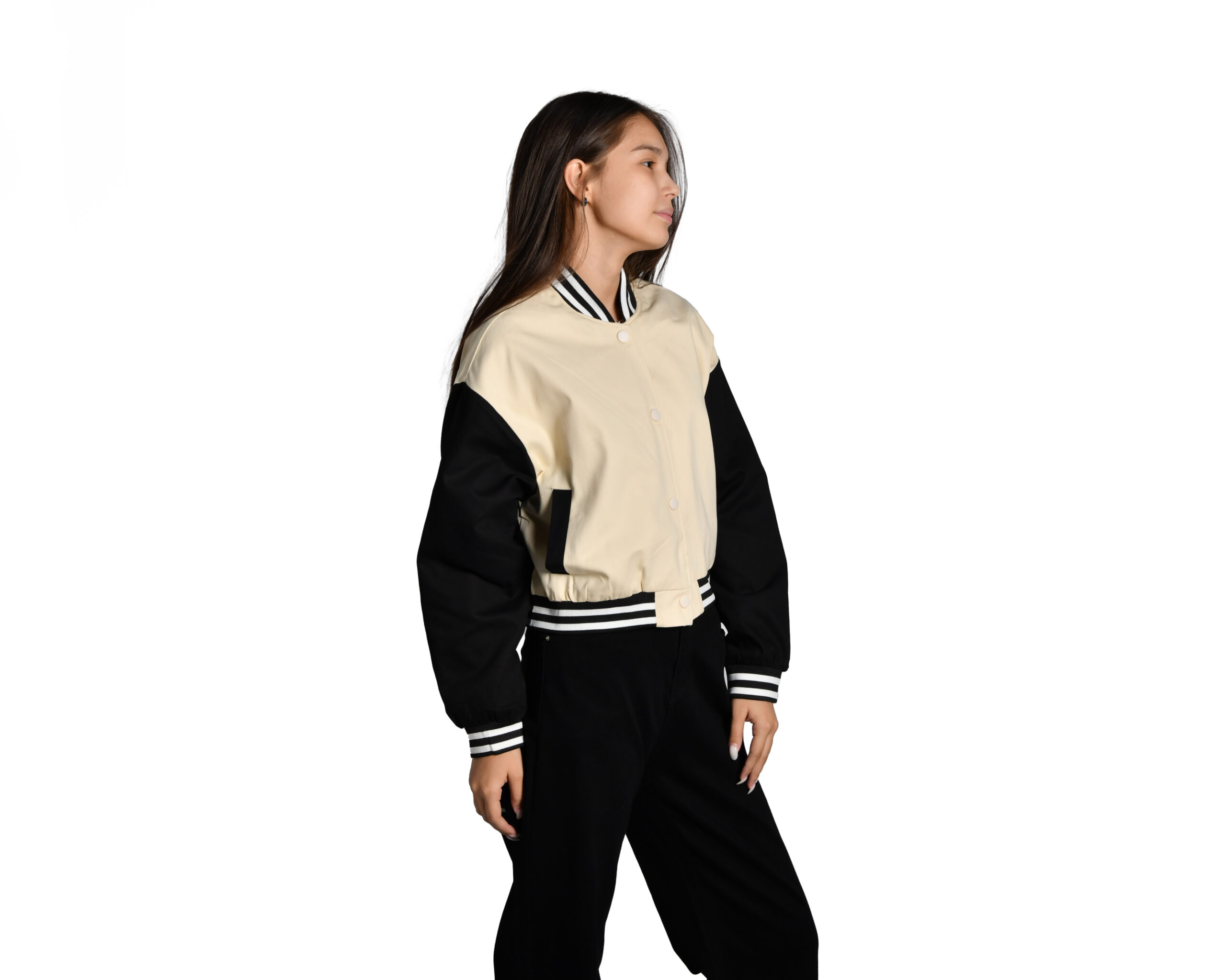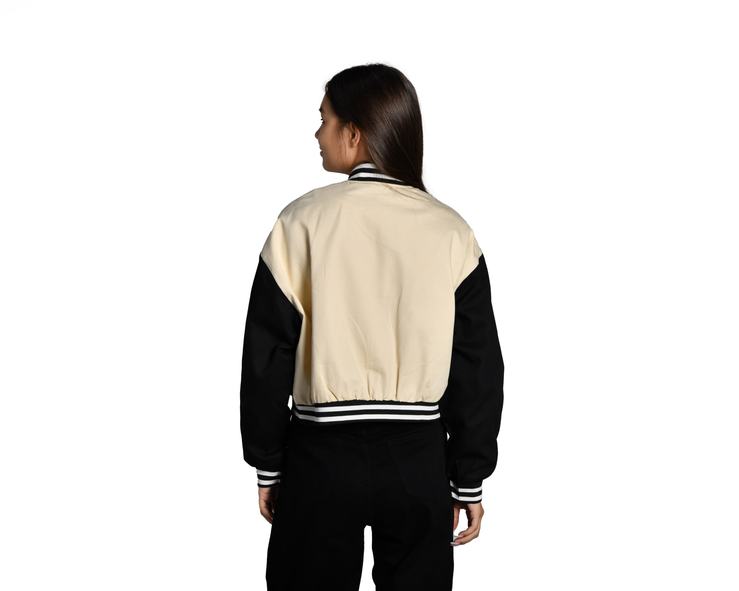 бомбер из цветного денима укороченый