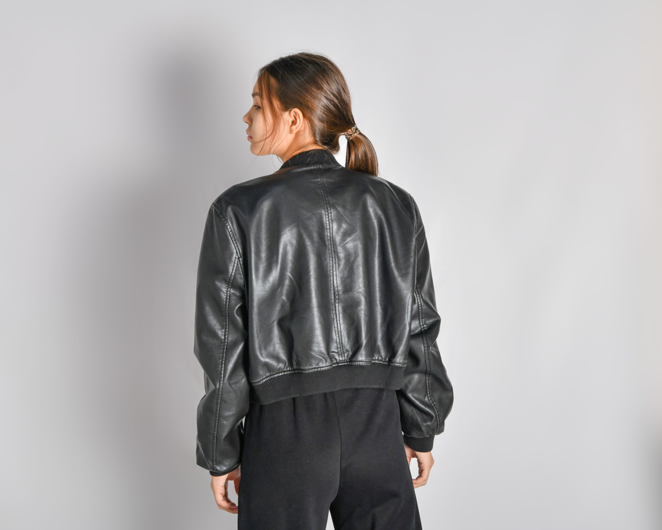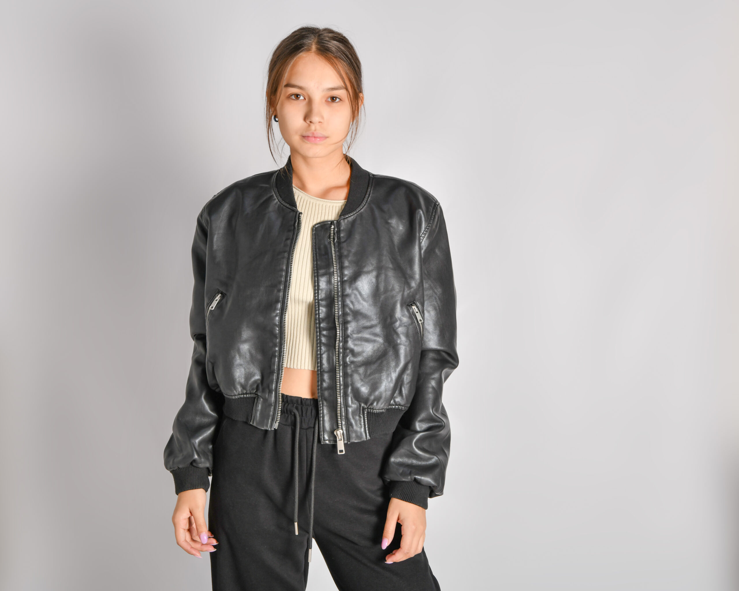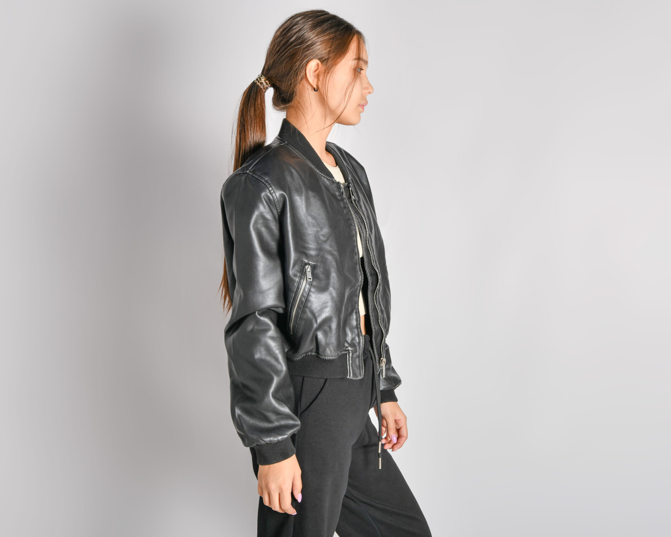 куртка бомбер из вареной экокожи