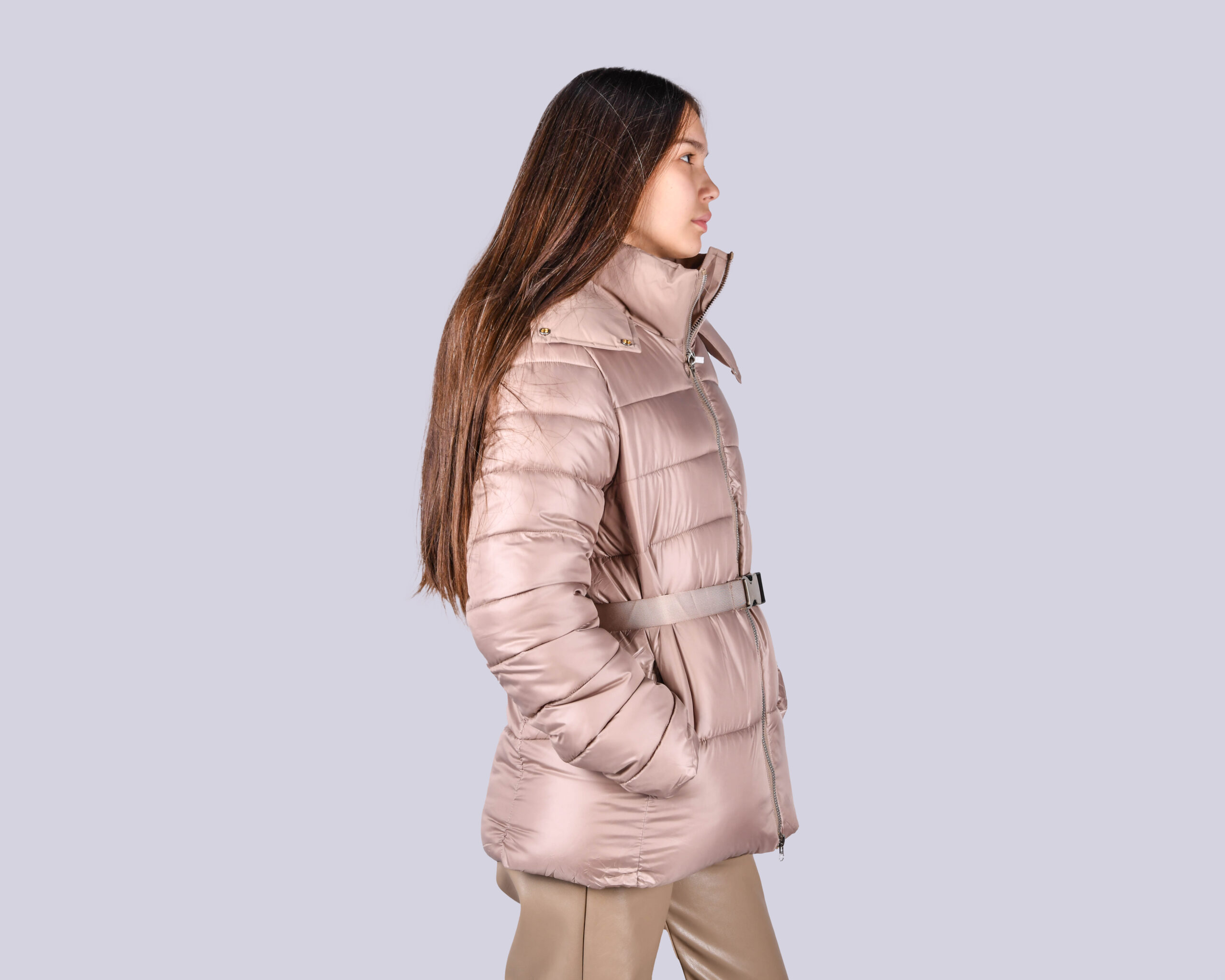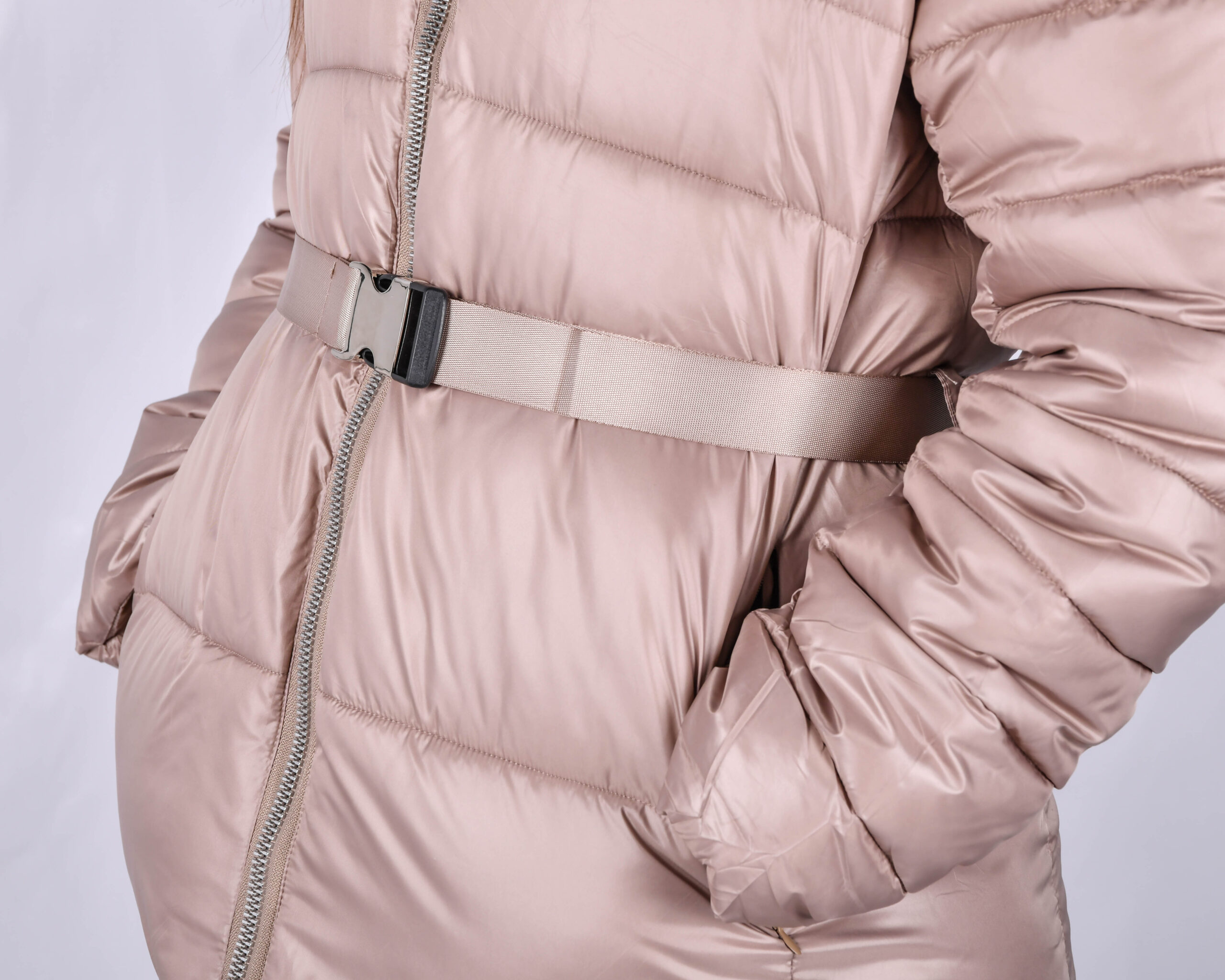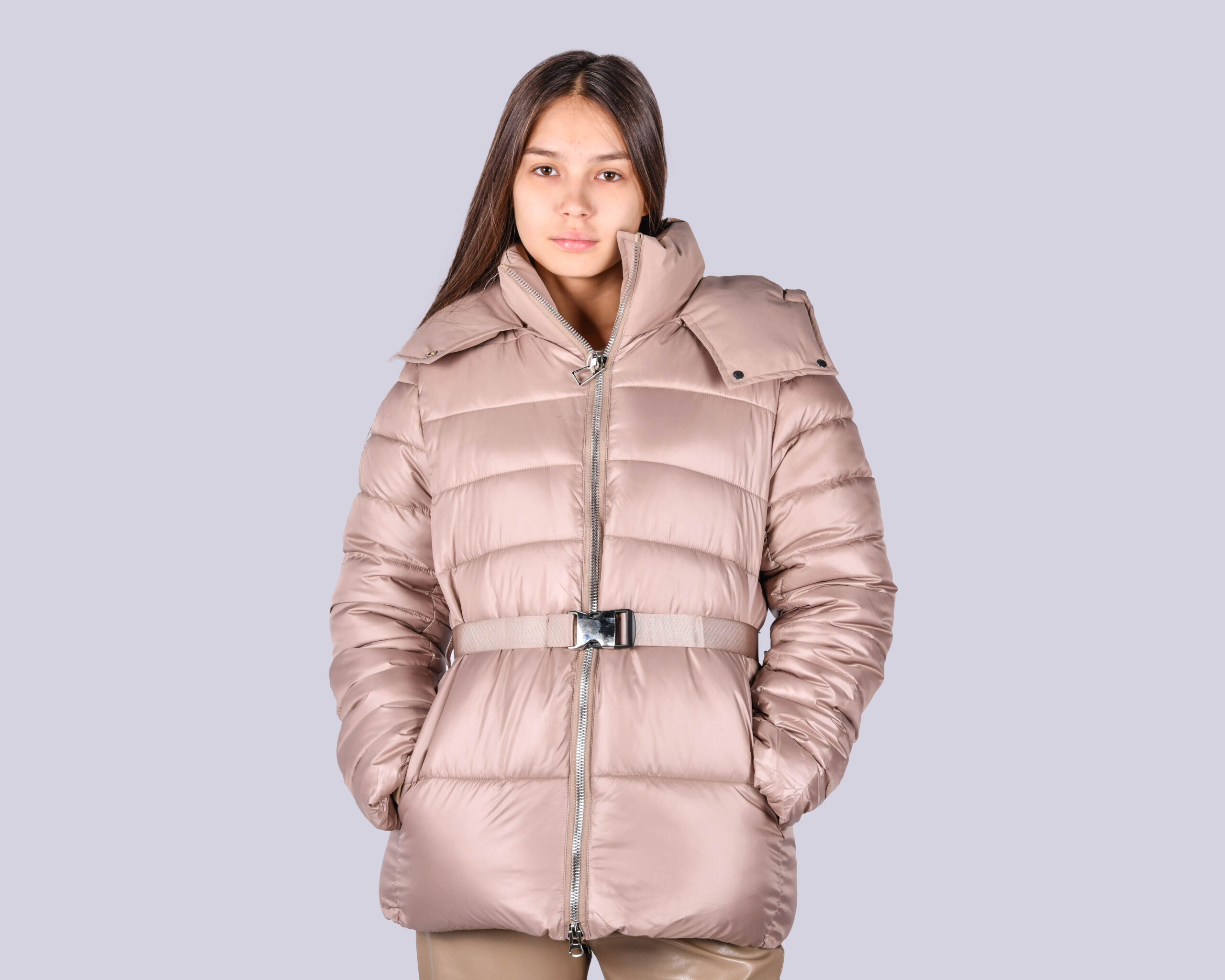 куртка комбинированого дизайна с декоративным ремнем, наполнитель халофайбер