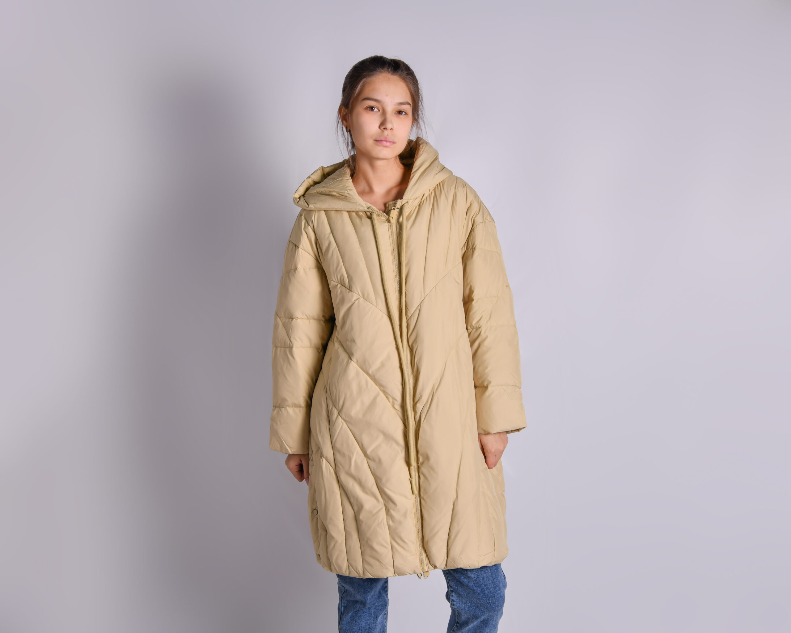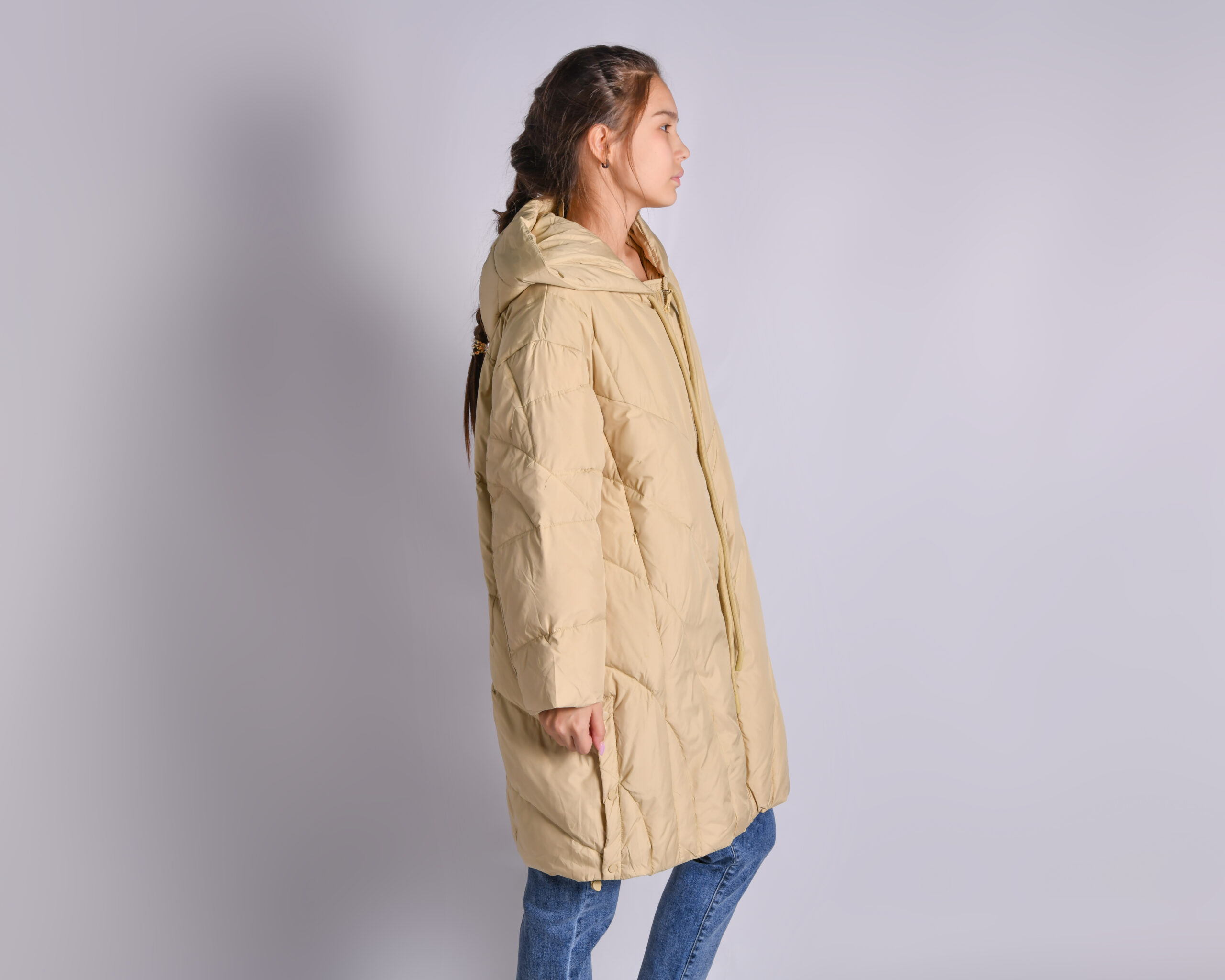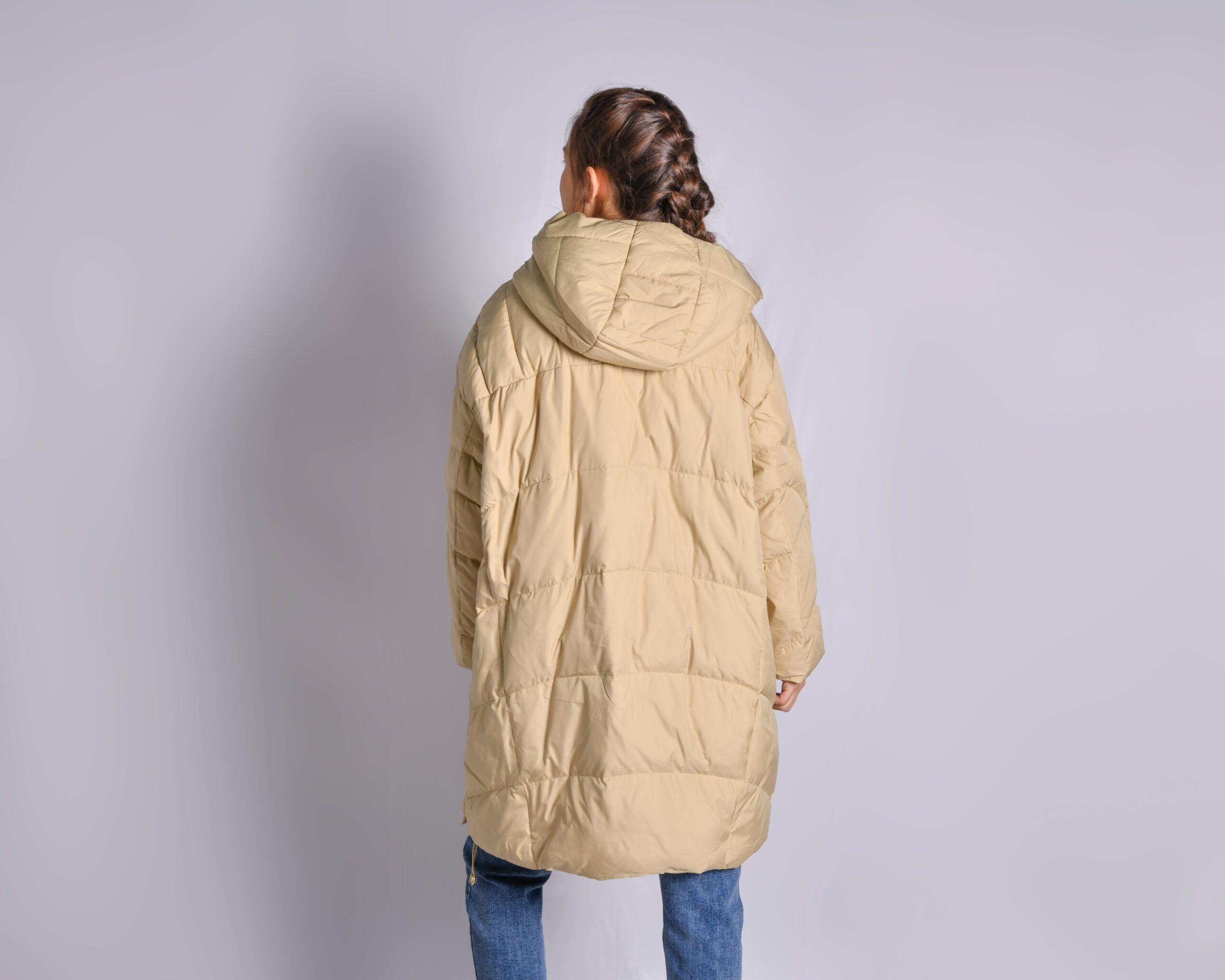 куртка длиная oversize с декоративными пуговицами и наполнителем пух