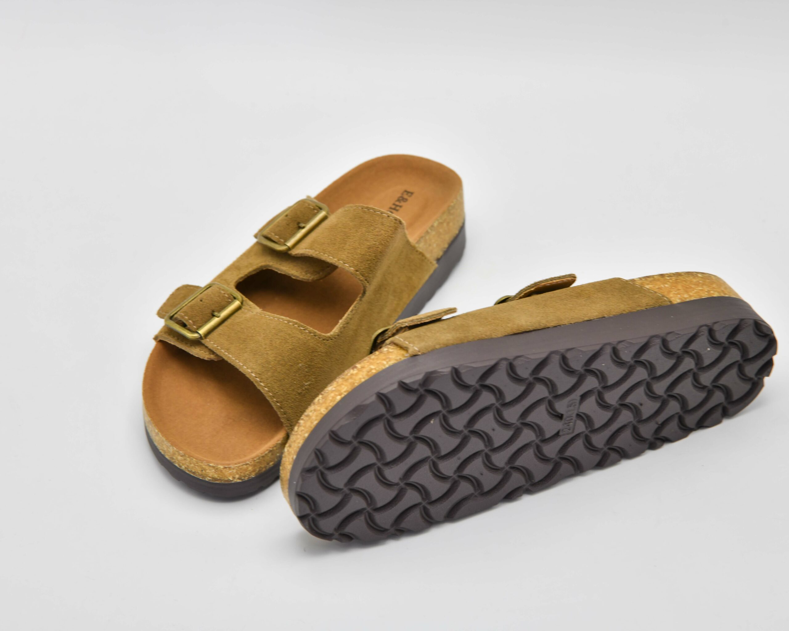 Шлепанцы из экозамши регулируемые на пробковой подошве
